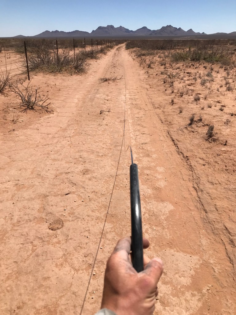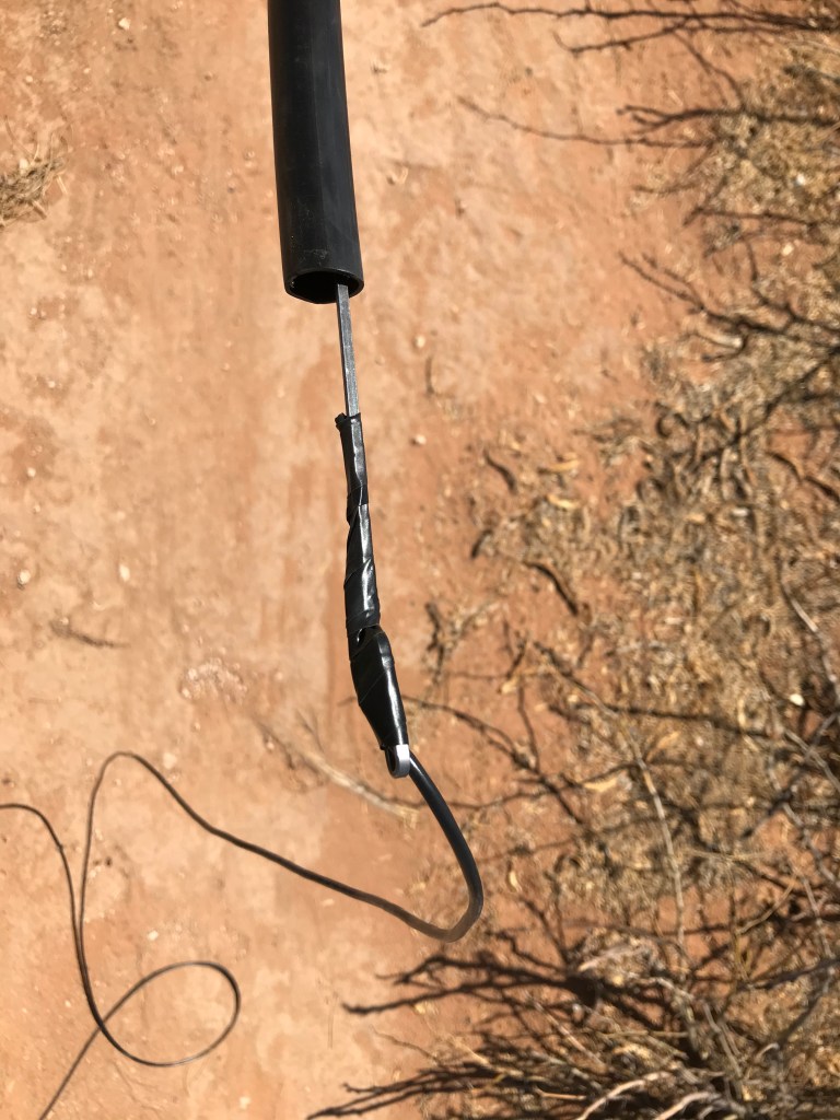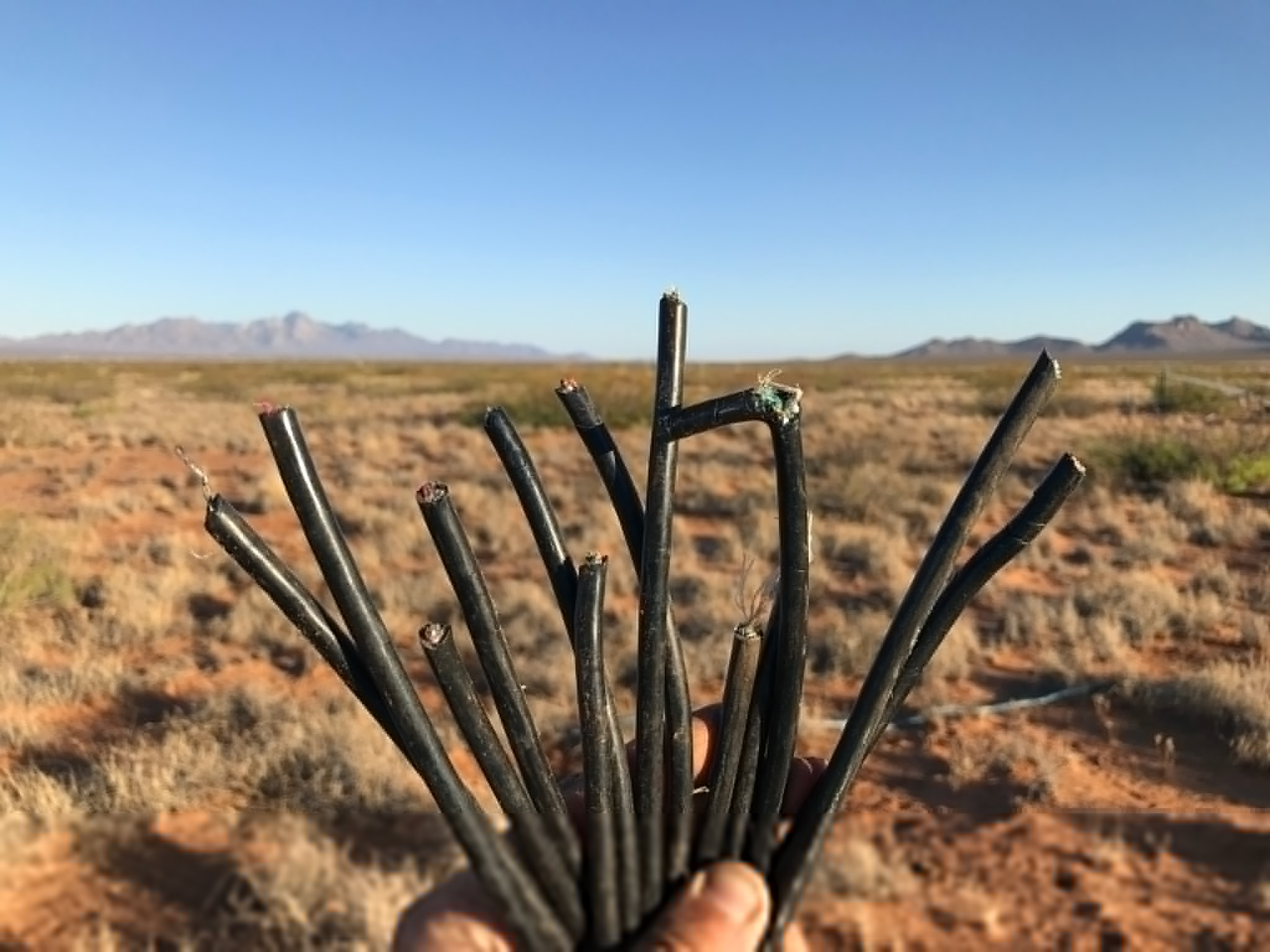 Rodent-chewed sensor cable in the Chihuahuan desert